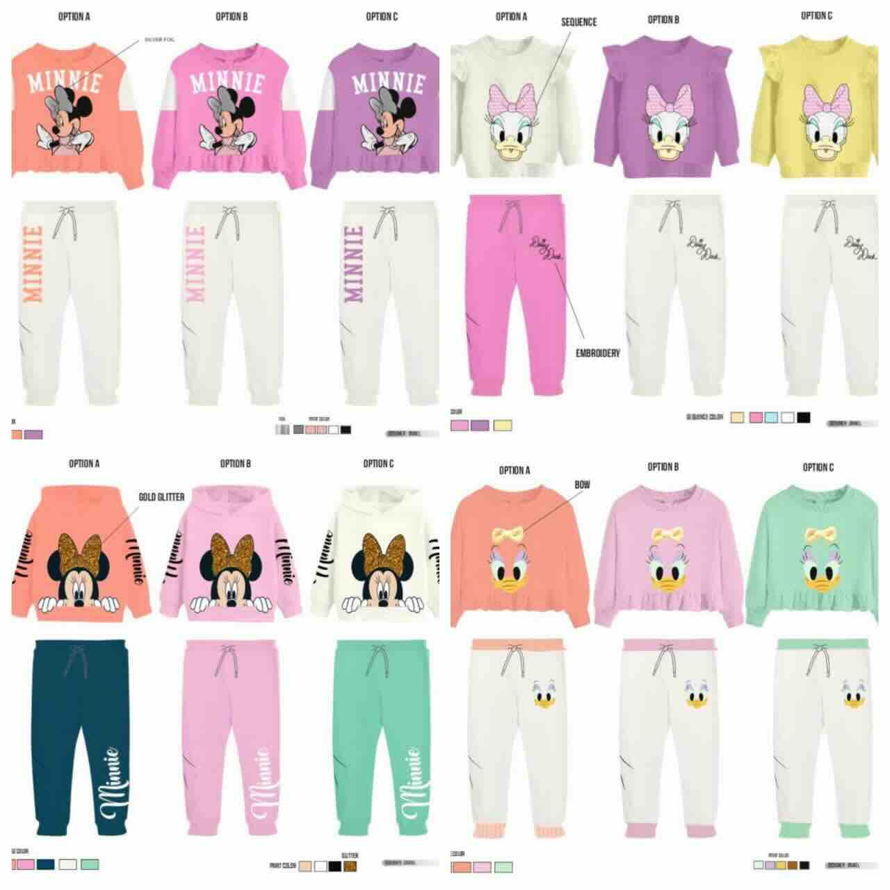 Style Description: Character Printed Girls Outerwear Sets. Long Sleeve. Sequin Decoration. Crew Neck and Hooded Pullover Sweatshirts. Flat Knit Rib Sleeve Cuff and Bottom Hem. Elastic Waist Joggers. Printed. Waist Has Draw String. Two Pockets.