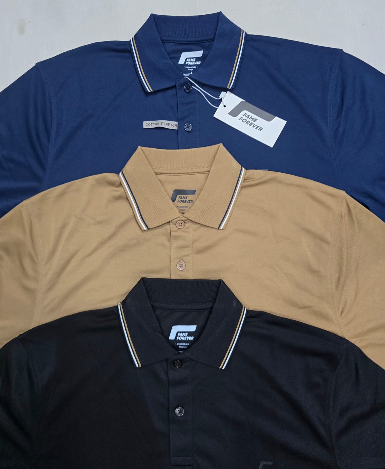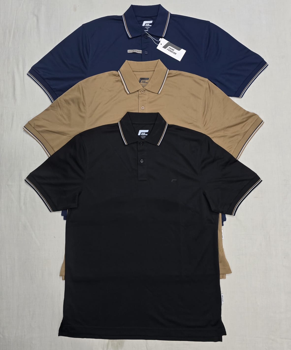 Mens polo shirtTotal: 380 640 pcs.Fabrics: 100% polyester Label: FAME FOREVERPrice take all: 2.90$ pcs.FOB Bangladesh