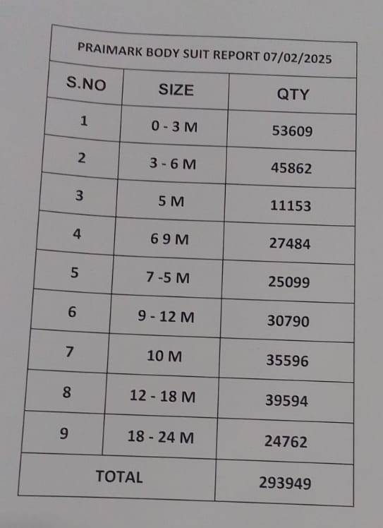 Primark Brand Baby Romper stock shipment pack