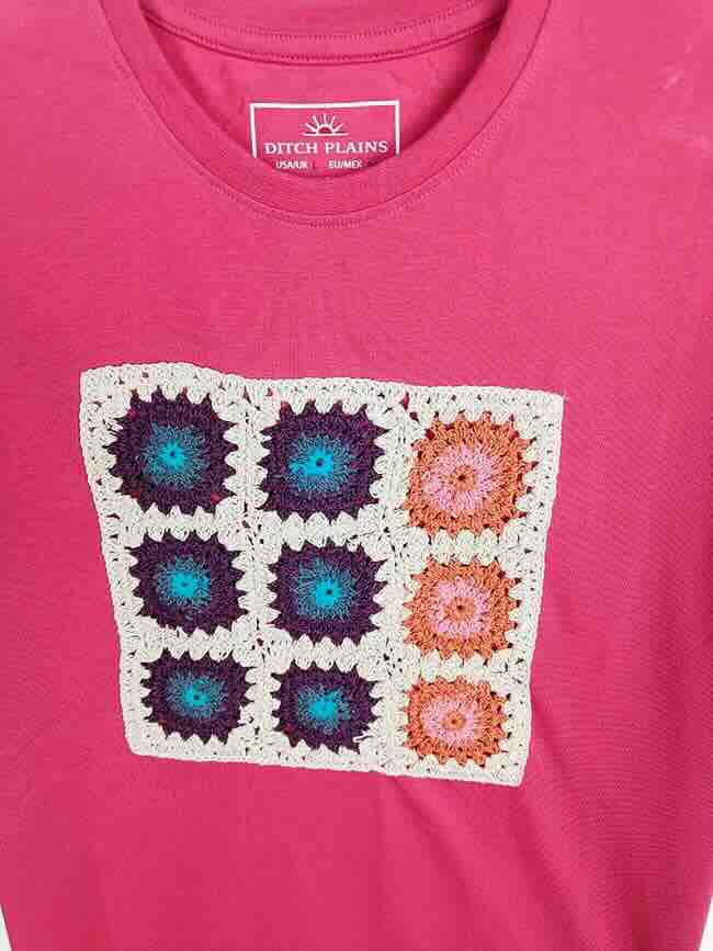 Style Description: Placement Applique | Short Sleeve | Crew Neck