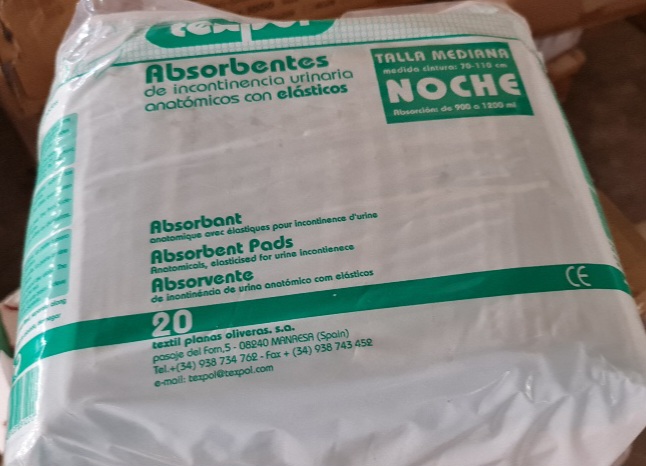 STOCK OF CLEANING ITEMS, DIAPERS, PADS, HAND GEL, HYDRO-ALCOHOLIC GEL, MASKS, DISINFECTANT WIPES, GLOVES, OVERALLS AND GOWNS, WATER BOTTLES, NEW AND SECOND-HAND CLOTHING, SEMI-NEW MATTRESSES, ETC..