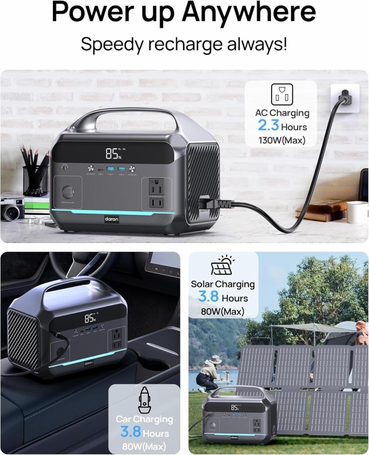 6 in 1 600W (1200W Peak) Portable Power Station