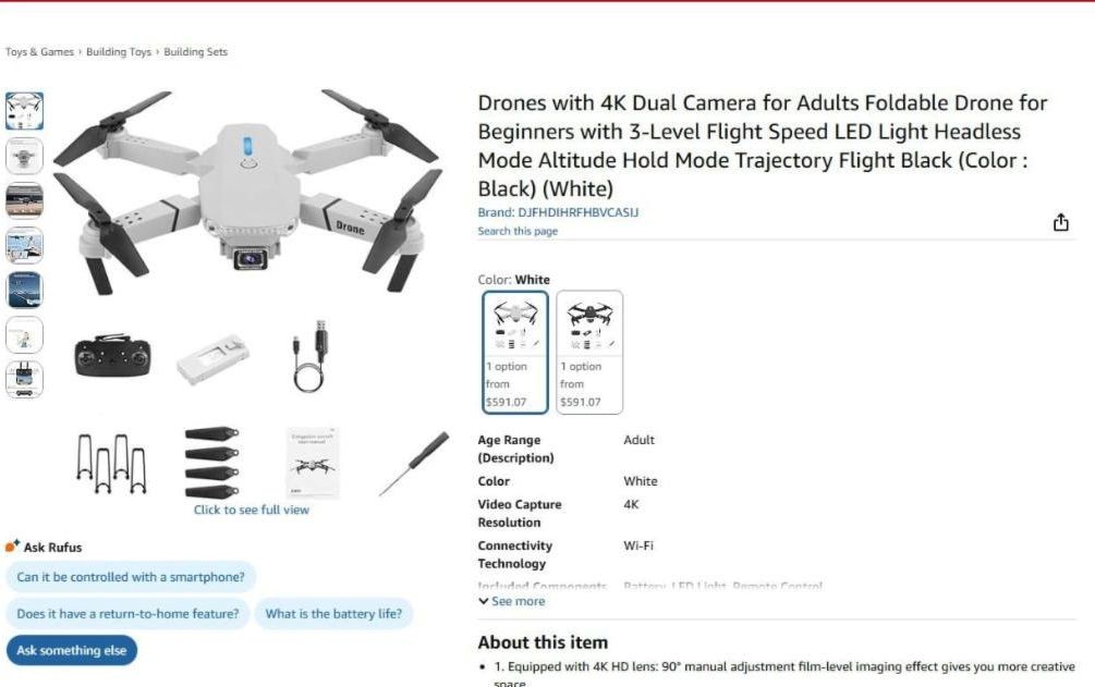 Drones with 4K Dual CameraTotal: 1 590 unitsPrice take all: 16.95$ pcs.FOB: LA, USA