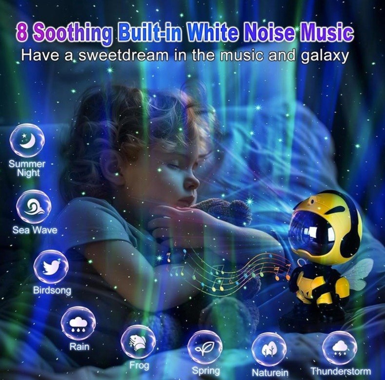 Little Bee Starry Sky Projector Lamp with Timer, Remote Control and Bluetooth Speaker and Built-in White Noise Music