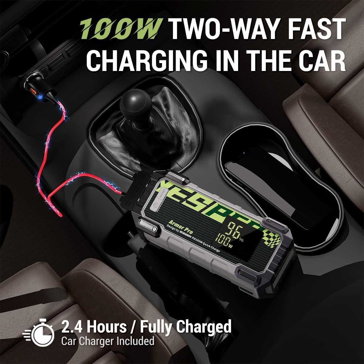 12V Safe Car Jumper Box Portable with 3.2in LCD Display & PD100W