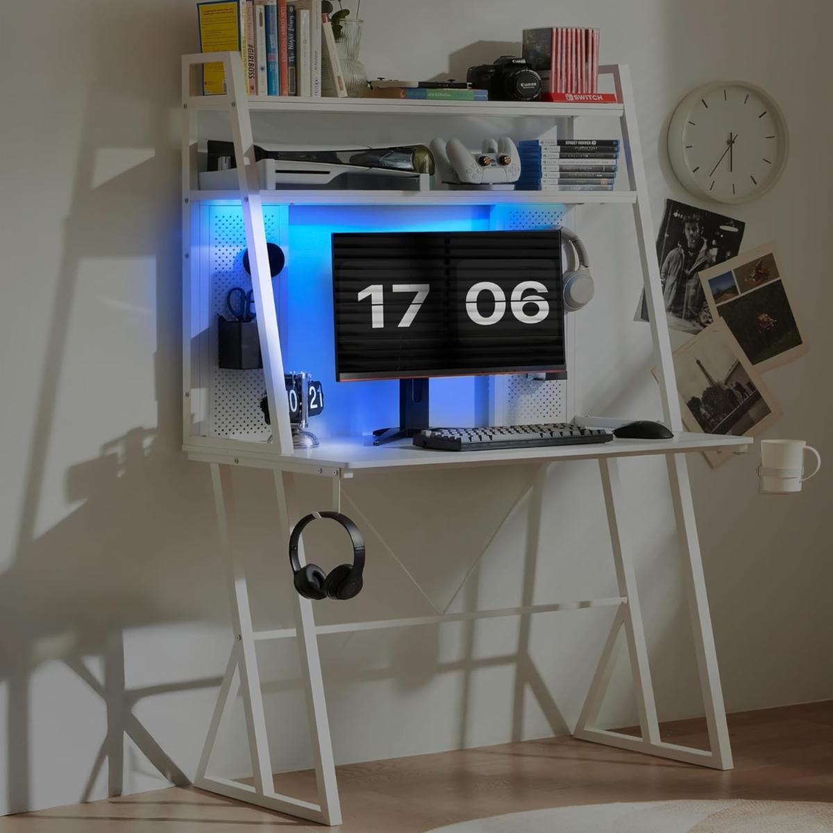 Dowinx 40" Tall Computer Desk with Pegboard and LED Lights