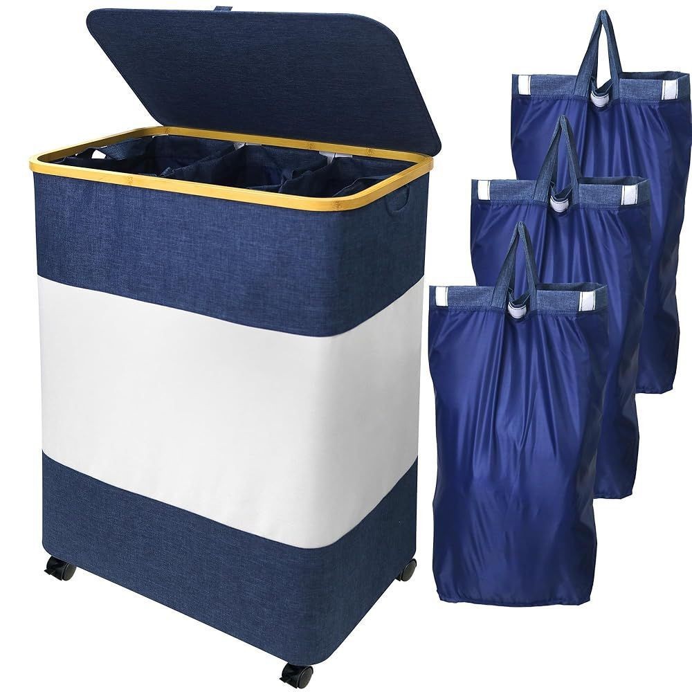 Clothes Hampers with Handle & 3 Removable Bags Laundry Basket Organizer with Wheels