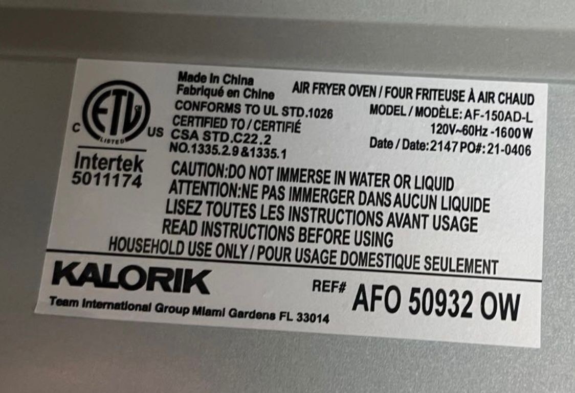 64503 - KALORIK MAXX 9-in-1 16 Quart Air Fryer Oven Toaster Oven USA