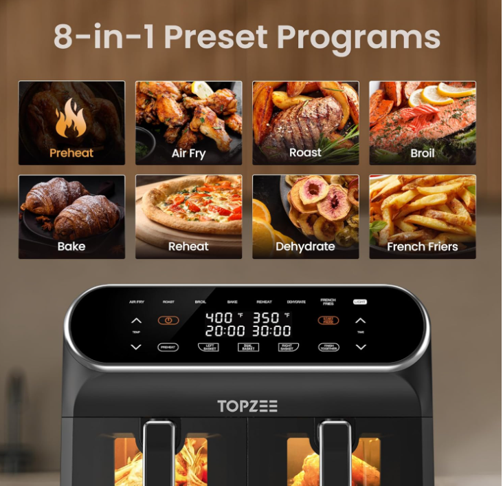 TOPZEE 8-Quart Dual Basket Air Fryer