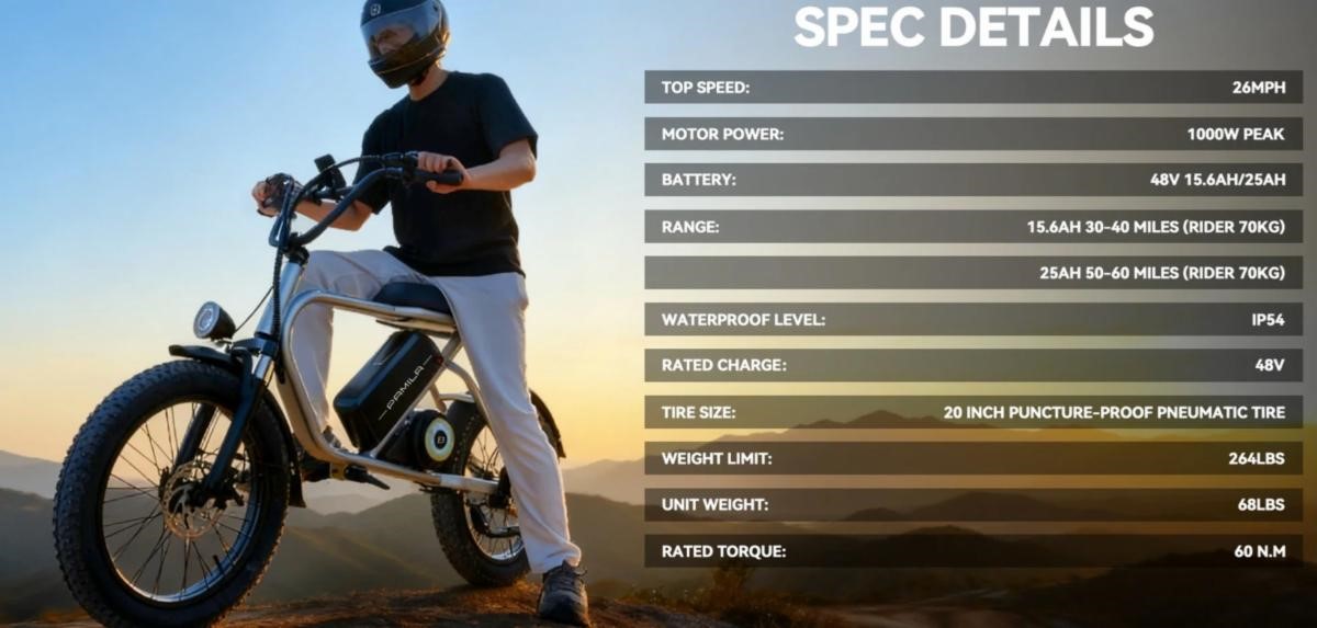 PAMILA E3 1000W Fat-Tire E-BikeLightweight & Breathing LEDTotal: 316 unitsPrice take all: 399.00$ per pcs.FOB: LA, USA
