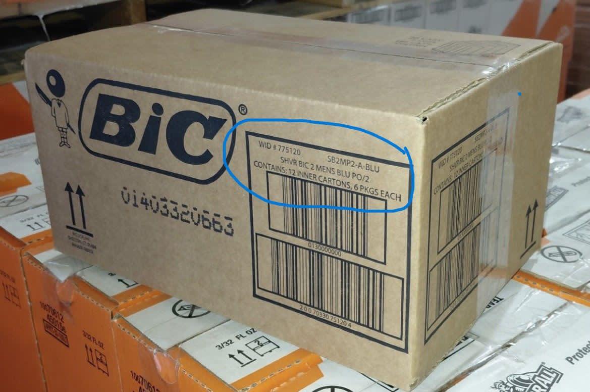 • Label shows: 12 inners (6ct each)