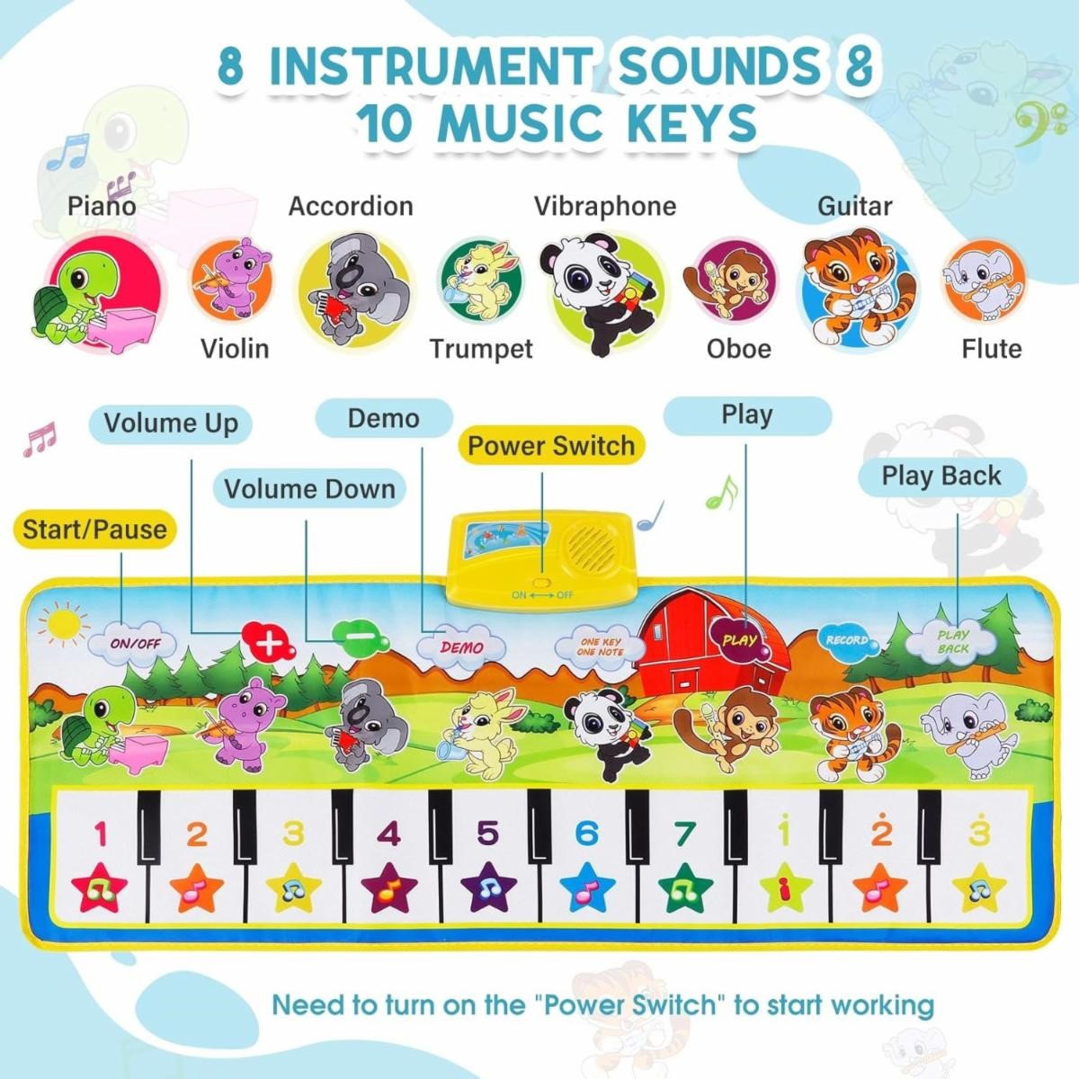 8 Instrument Sounds Piano Mat for Toddlers39.5" X 14" Musical MatTotal: 18 000 unitsPrice take all: 4.99$ pcs.EXW: LA, USA