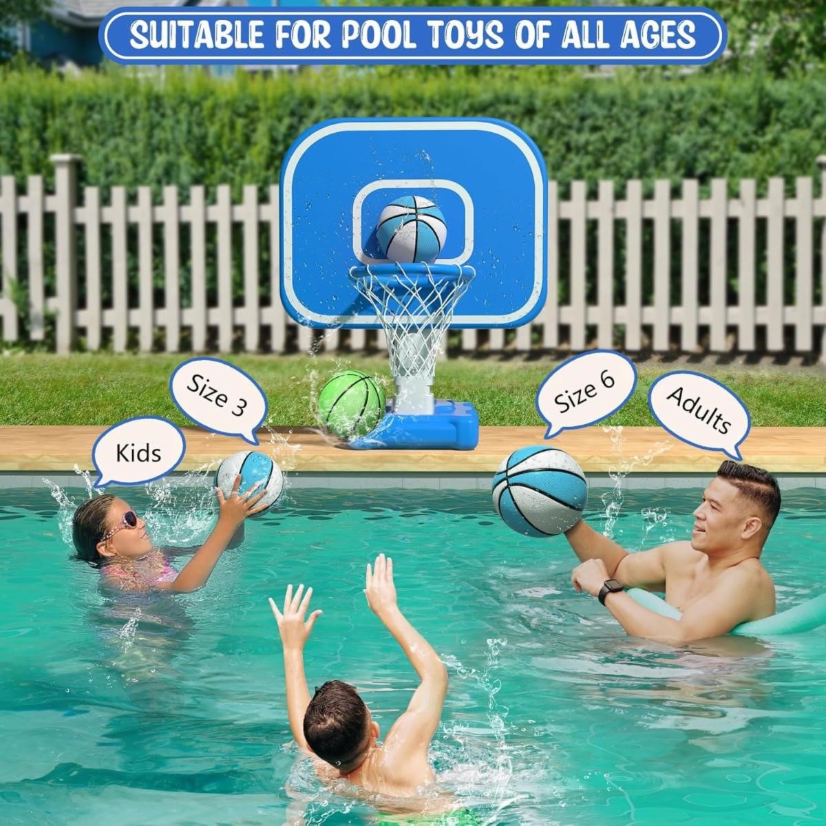 33"x26"x50" Oversized Pool Toys with Adjustable Height Includes 4 Balls (Size 6, 2×Size 3, Glow) Nets/Pump for Poolside Water Basketball Game