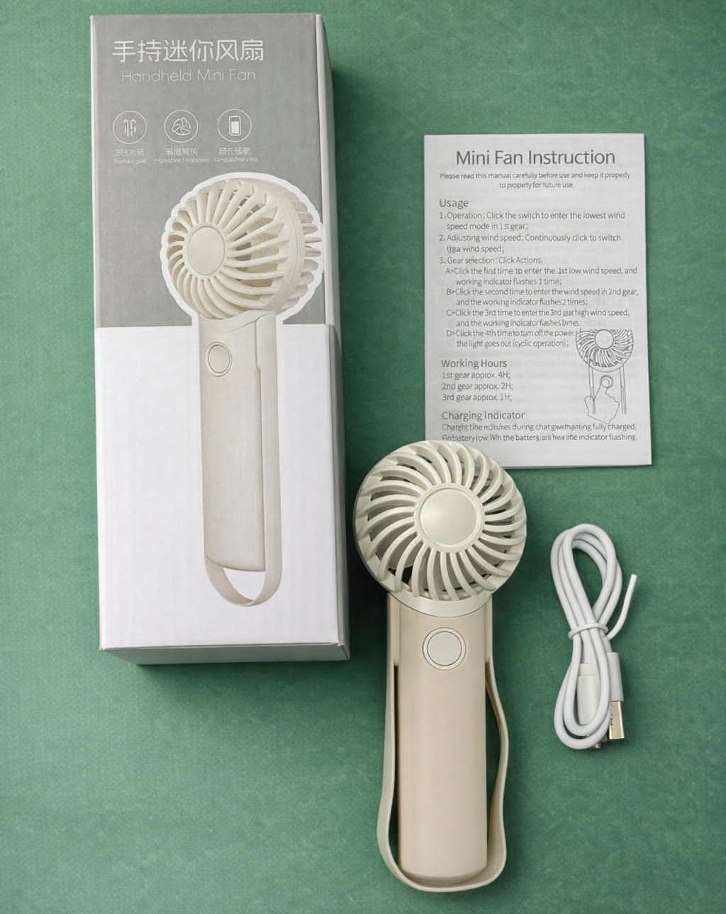 Handheld 3 speed mini fan with USB charging USA